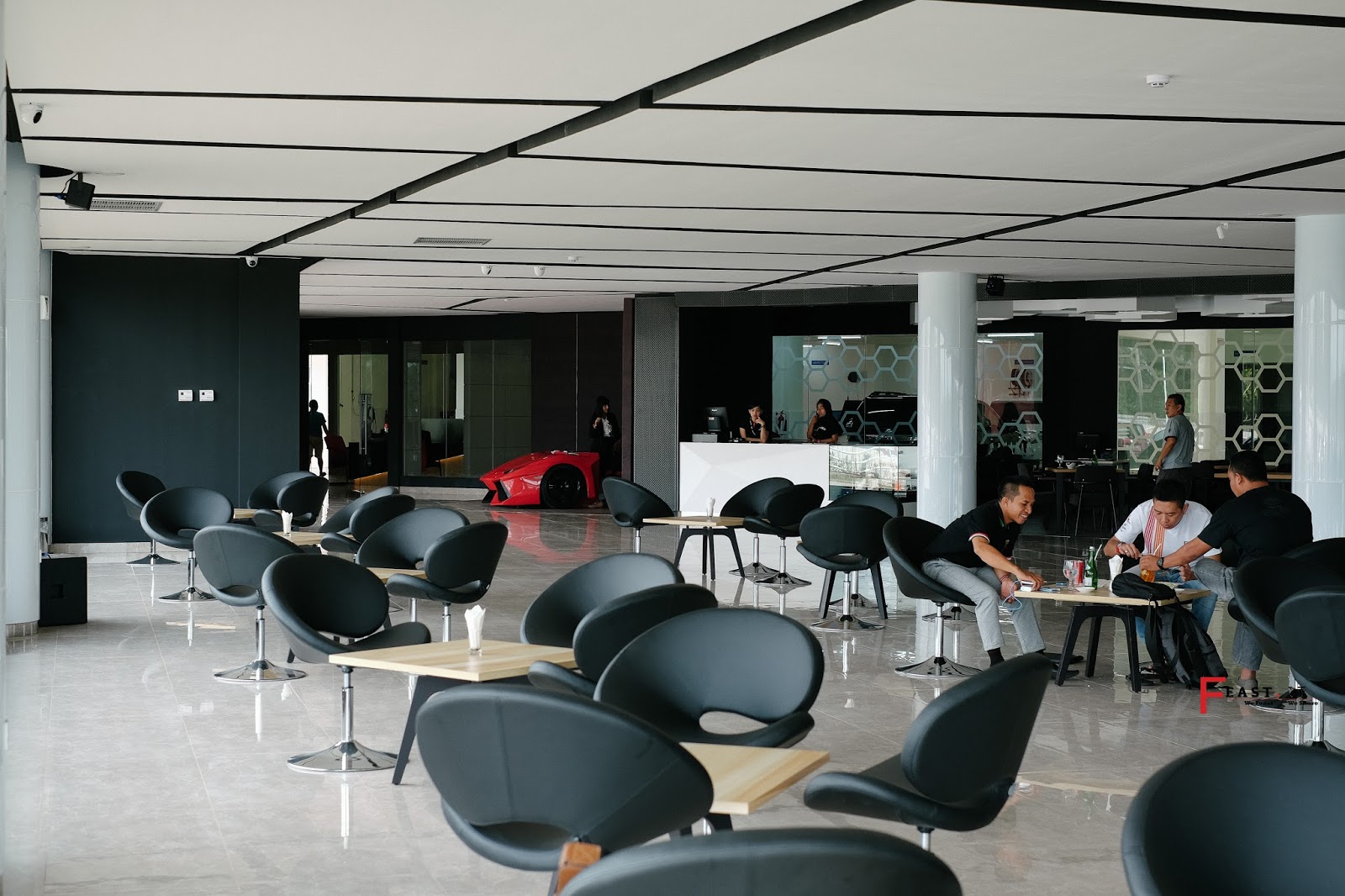 Awalnya kita mungkin akan berpikir ini adalah tempat showroom atau bengkel mobil. YUP! Memang benar! But jangan lupa disini juga ada cafe dan resto, selain itu juga terdapat Meeting room, Cigar room dan Wine room. Sebelum kita masuk ke makanan, mari dijelaskan ada apa aja sih disini?